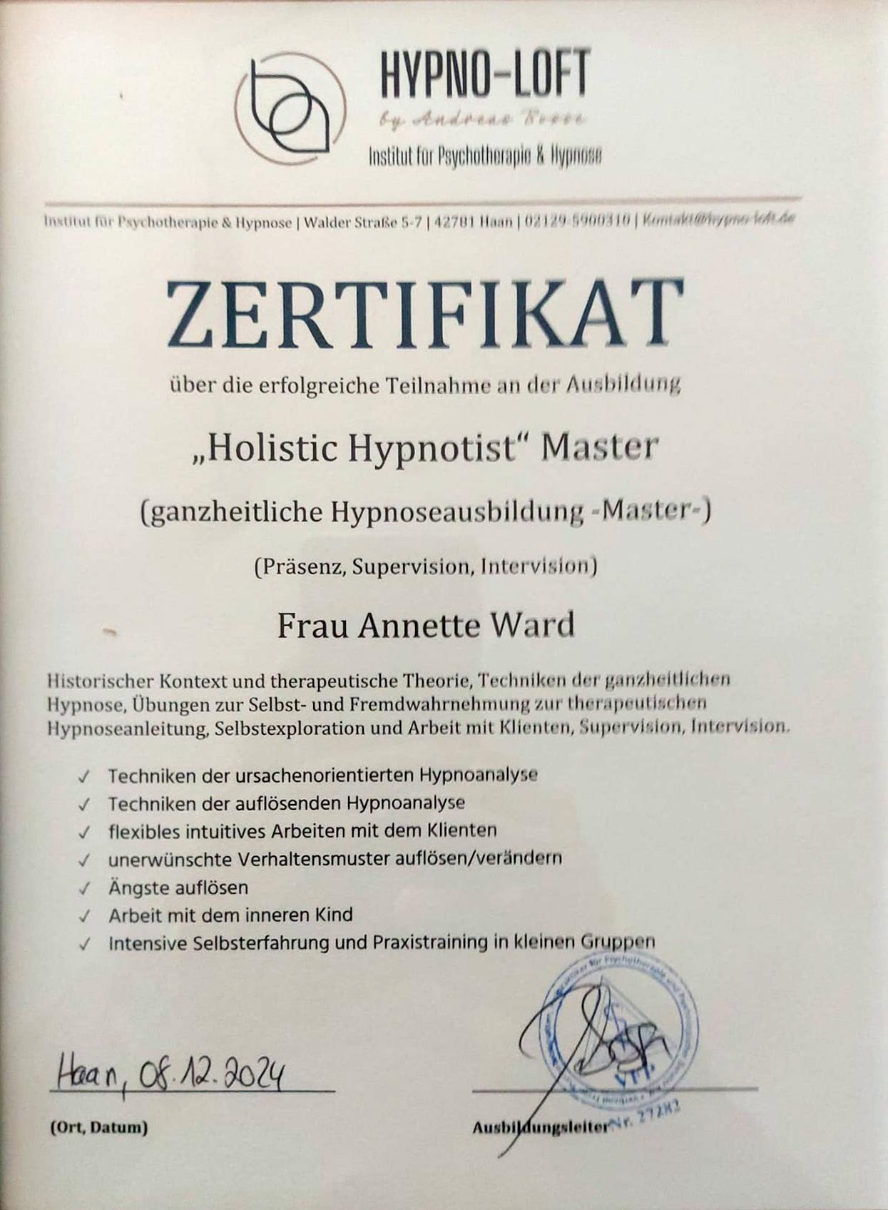 2024 „Holistic Hypnotist“ Master (ganzheitliche Hypnose-